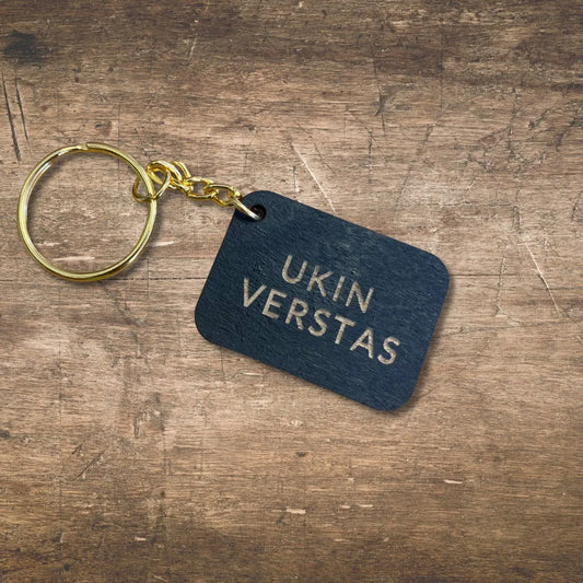 Puinen avaimenperä omalla tekstillä