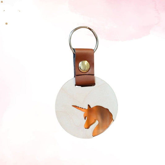 Puinen avaimenperä logolla