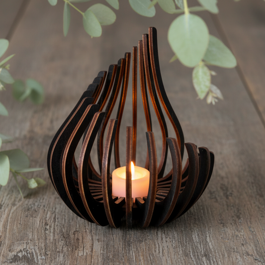 Puinen tuikkulyhty led-kynttilälle