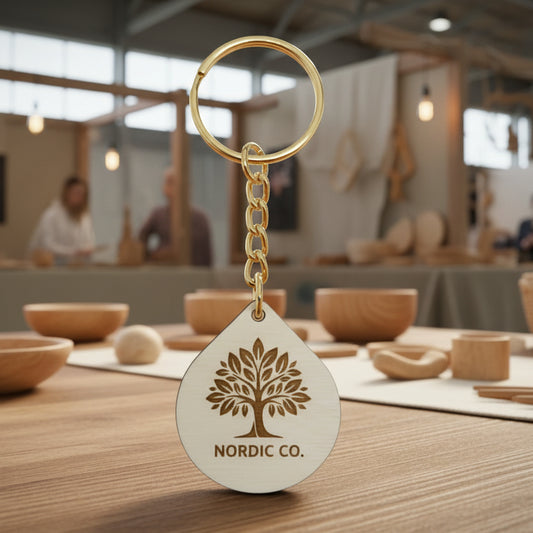 Puinen Avaimenperä Logolla Yritykselle | Personoitu Yritysavaimenperä