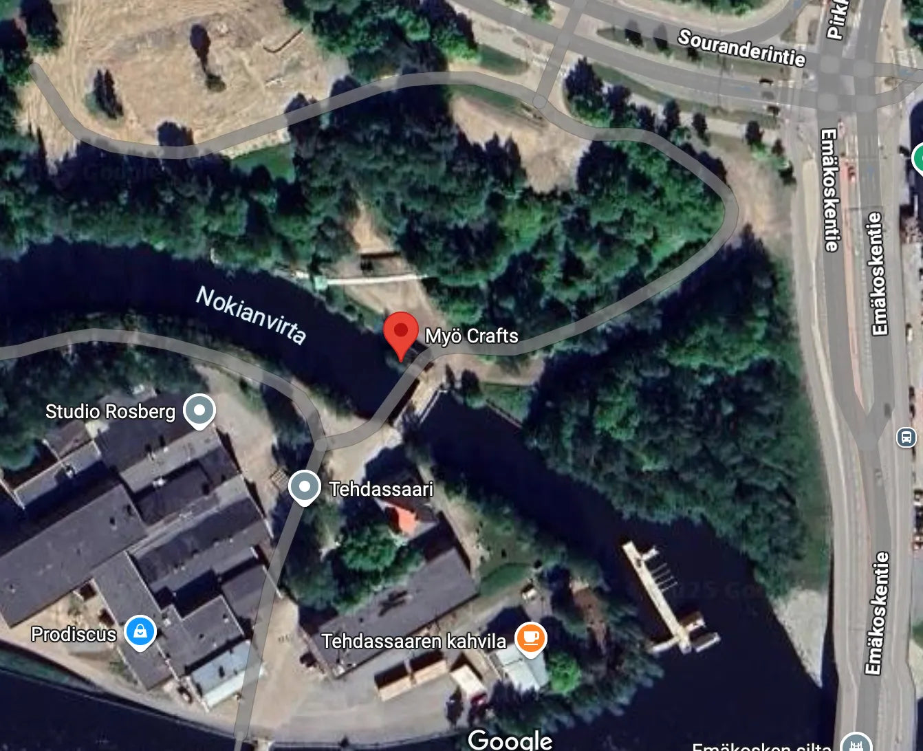 Myön paja sijaitsee heti Tehdassaareen saavuttaessa ennen puista siltaa Portinvartijan talossa.