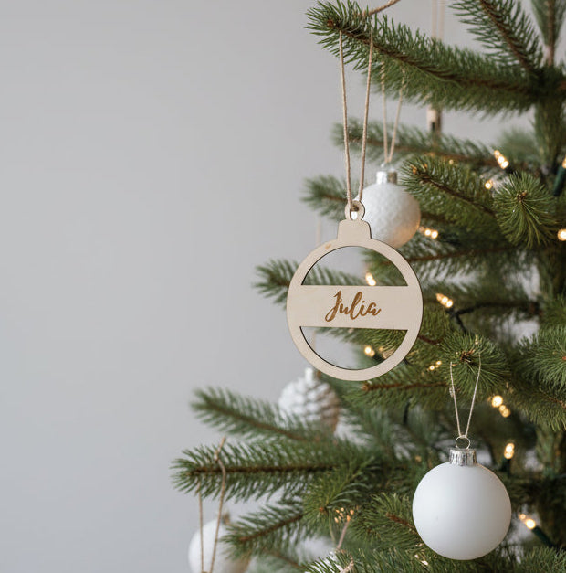 Kaunis puinen joulukuusenkoriste halutulla nimellä luo joulukoristelustasi uniikin. Loistoidea joululahjaksi vaikkapa kummilapsille tai pikkujouluina ystävälle.