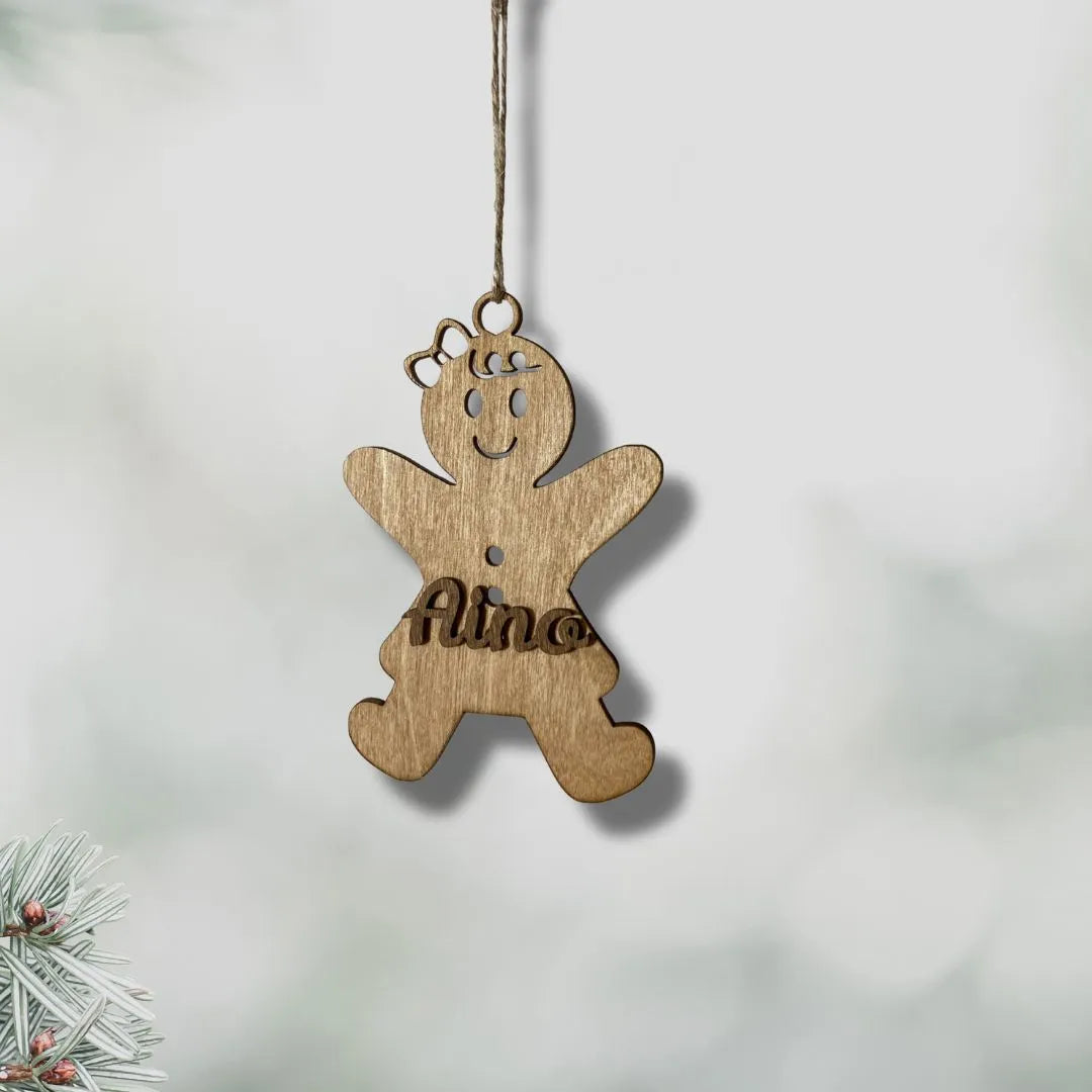 Ihastuttava joulukuusenkoriste piparkakkupoika ja -tyttö, jotka personoidaan halutulla nimellä joko kiiltävällä punaisella peiliakryylilla tai luonnonläheisellä ruskealla koivulla. Sopii esimerkiksi lahjaksi lapselle. Piristää joulukuusta takuulla!