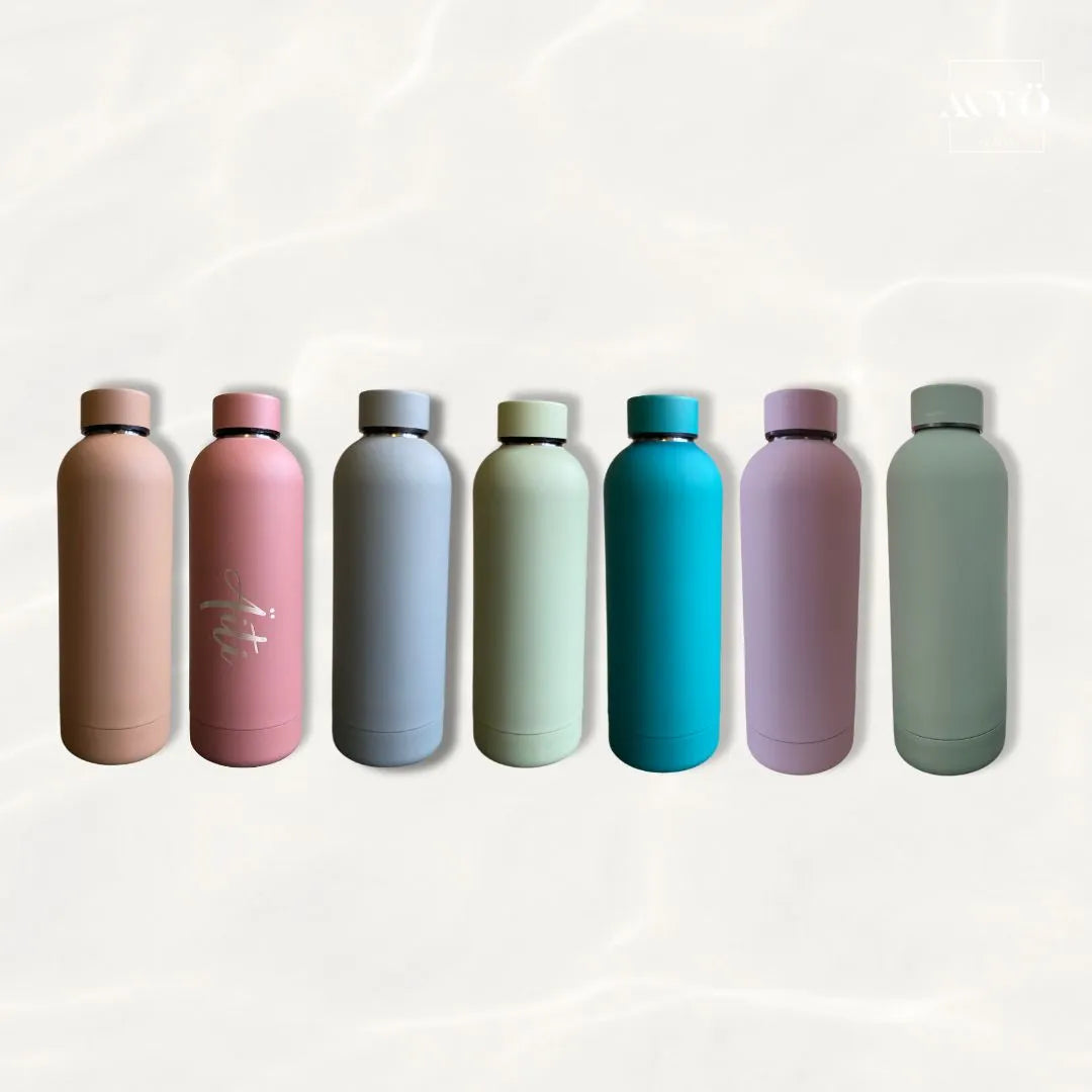 Personoitu juomapullo erottuu joukosta ja on käytännöllinen valinta esimerkiksi lahjaksi. Saatavilla ihanan hempeitä eri värejä. Juomapulloon kaiverretaan haluttu nimi. Pitää kuuman juoman kuumana ja viileän viileänä.