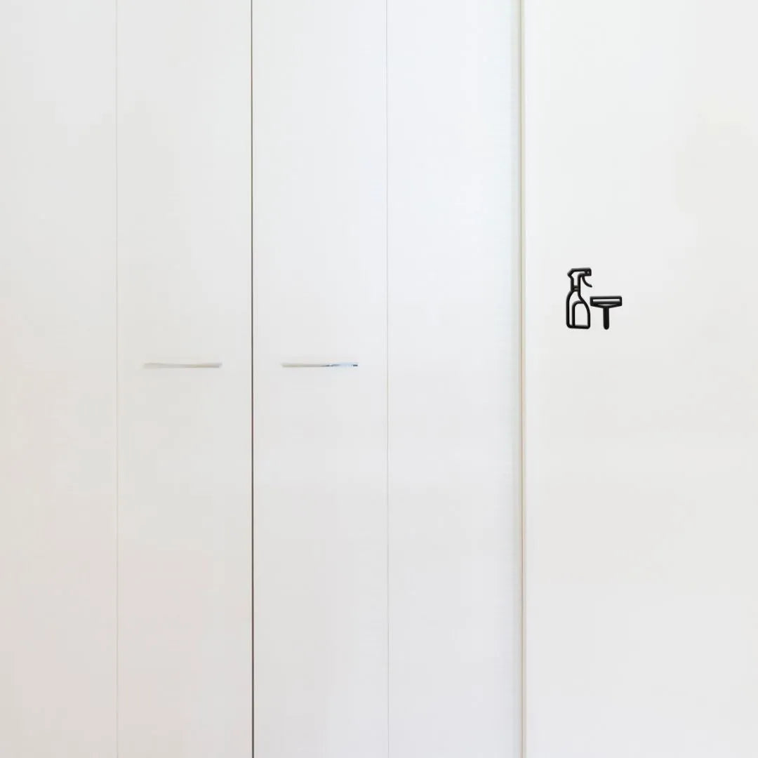Puinen siivouskomero-opaste toimitilaan | Suihkepullo
